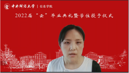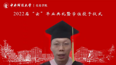 2022届研究生代表陈文秀同学分享了自己在中财大度过的八年宝贵时光,从本科生到辅导员再到硕士研究生,她感恩每位传道授业解惑的老师,感恩在中财大遇到的所有美好。她希望同学们不论是顺境抑或是逆境,都能坚定信念,保持良好的心态,永远记住自己炙热的梦想和坚强的信心,用实际行动诠释“龙马担乾坤”的中财大精神。